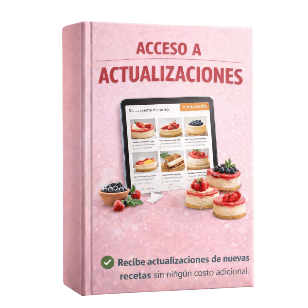 Disfruta de actualizaciones gratuitas con nuevas recetas y mejoras, asegurándote de que siempre tengas acceso a lo mejor en el mundo del cheesecake.